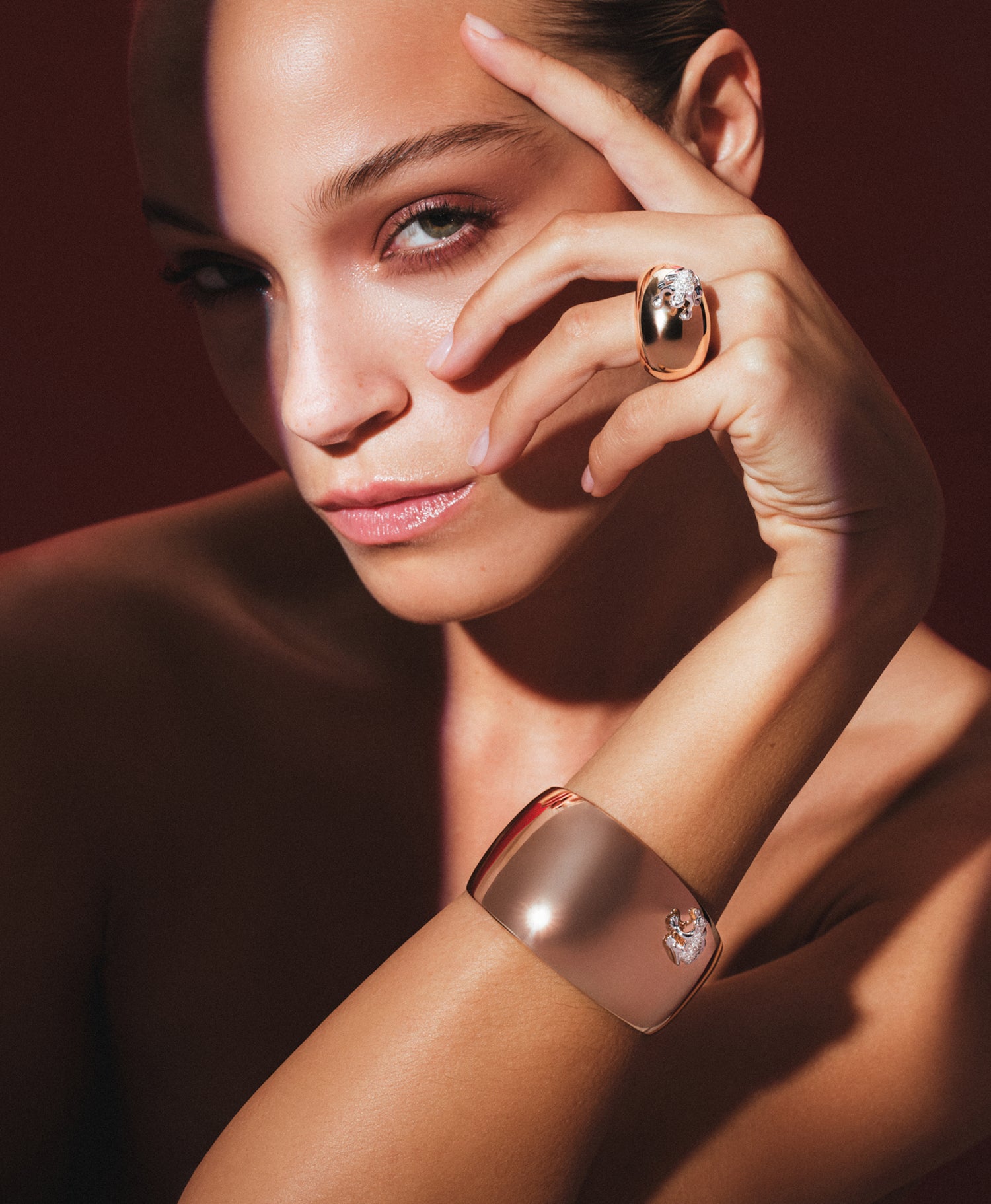 L’anello scultura iconico della collezione Happy Frog si veste di materia: la parte superiore è scolpita in pietra dura, su cui si posa la rana in oro e diamanti. Il resto della forma dell’anello è in oro 18k. Una micro-architettura tattile che unisce arte...- 11.880,00€
