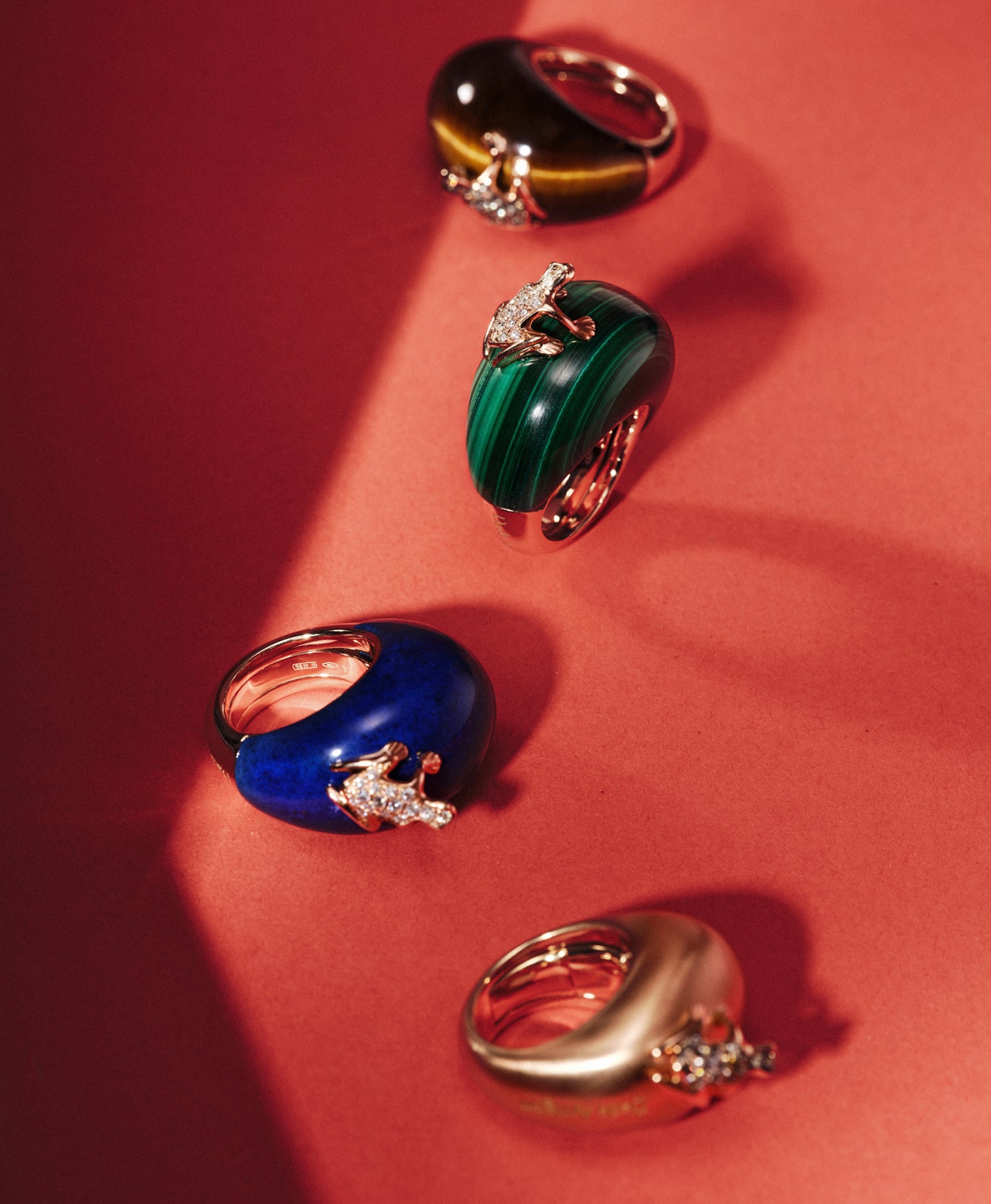 L’anello scultura iconico della collezione Happy Frog si veste di materia: la parte superiore è scolpita in pietra dura, su cui si posa la rana in oro e diamanti. Il resto della forma dell’anello è in oro 18k. Una micro-architettura tattile che unisce arte...- 10.780,00€