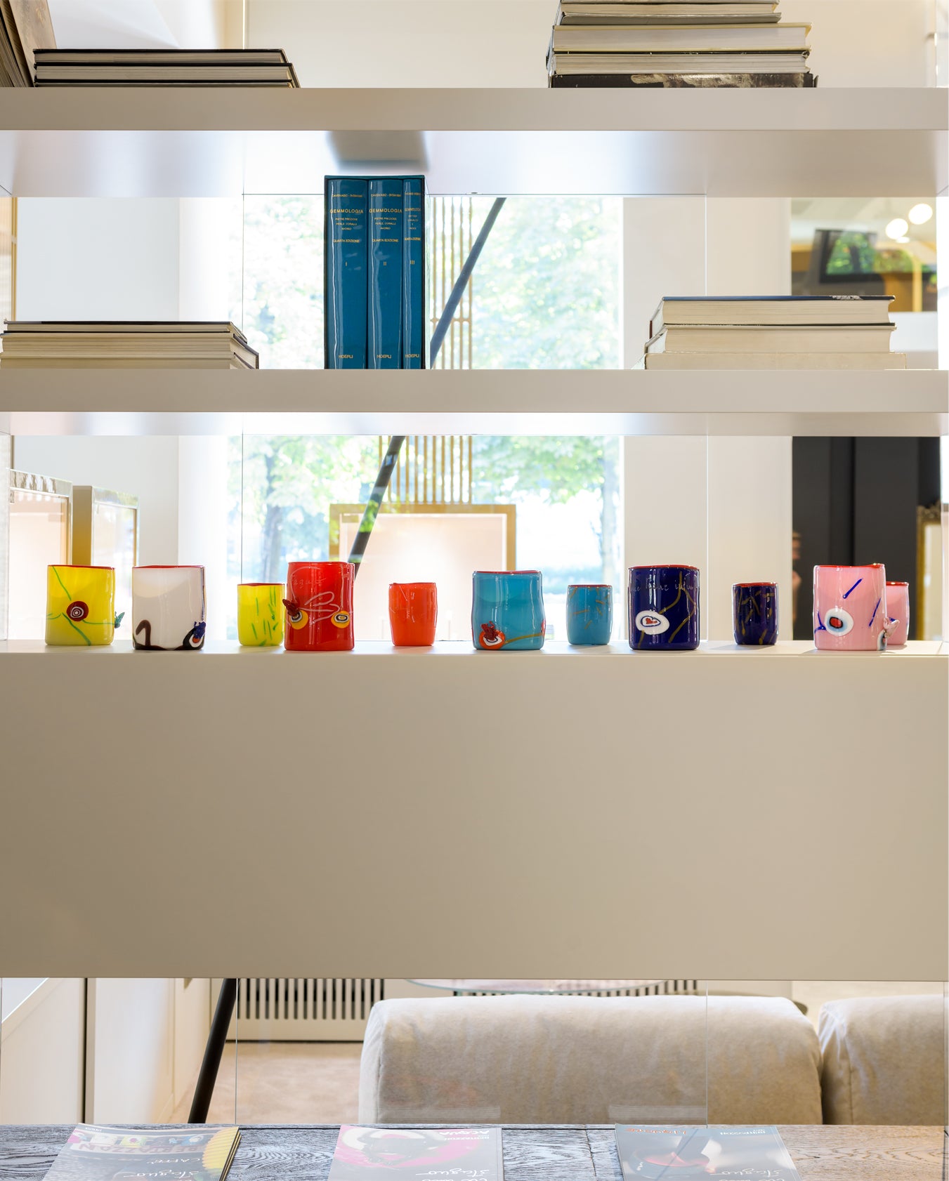 A crystal glass handcrafted in the ancient furnaces of Murano, part of the "Come rane in uno stagno" artistic collection by Roberto Bertazzon. Each piece is unique, crafted using the incalmo filigree technique and decorated with exclusive murrine. The distinctive element is the crystal...- 410,00€