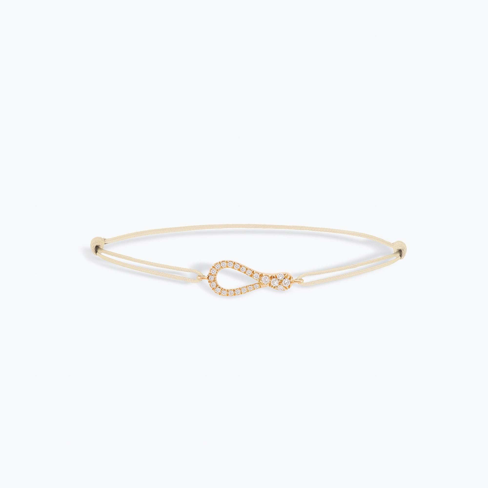 Modulo Elika da 1,5 cm con pavé di diamanti su cordino regolabile in cotone. Un gioiello fresco e quotidiano, ispirato al volo elicoidale del seme d’acero, ideale anche in abbinamento. La misura può essere adattata tramite lo scorrimento dei nodi.