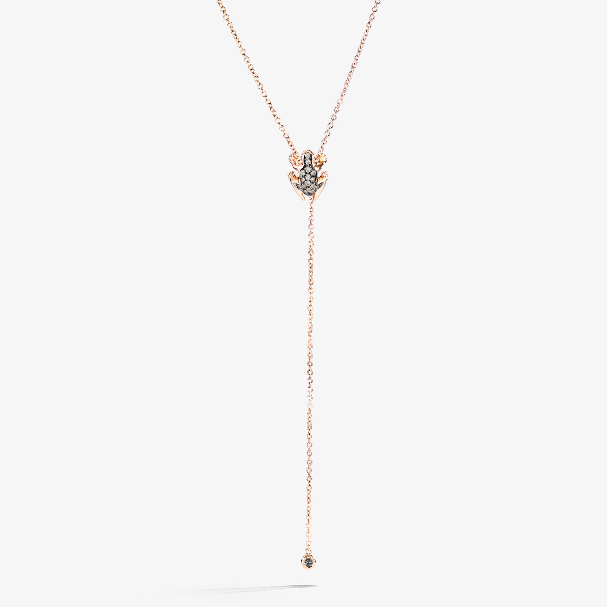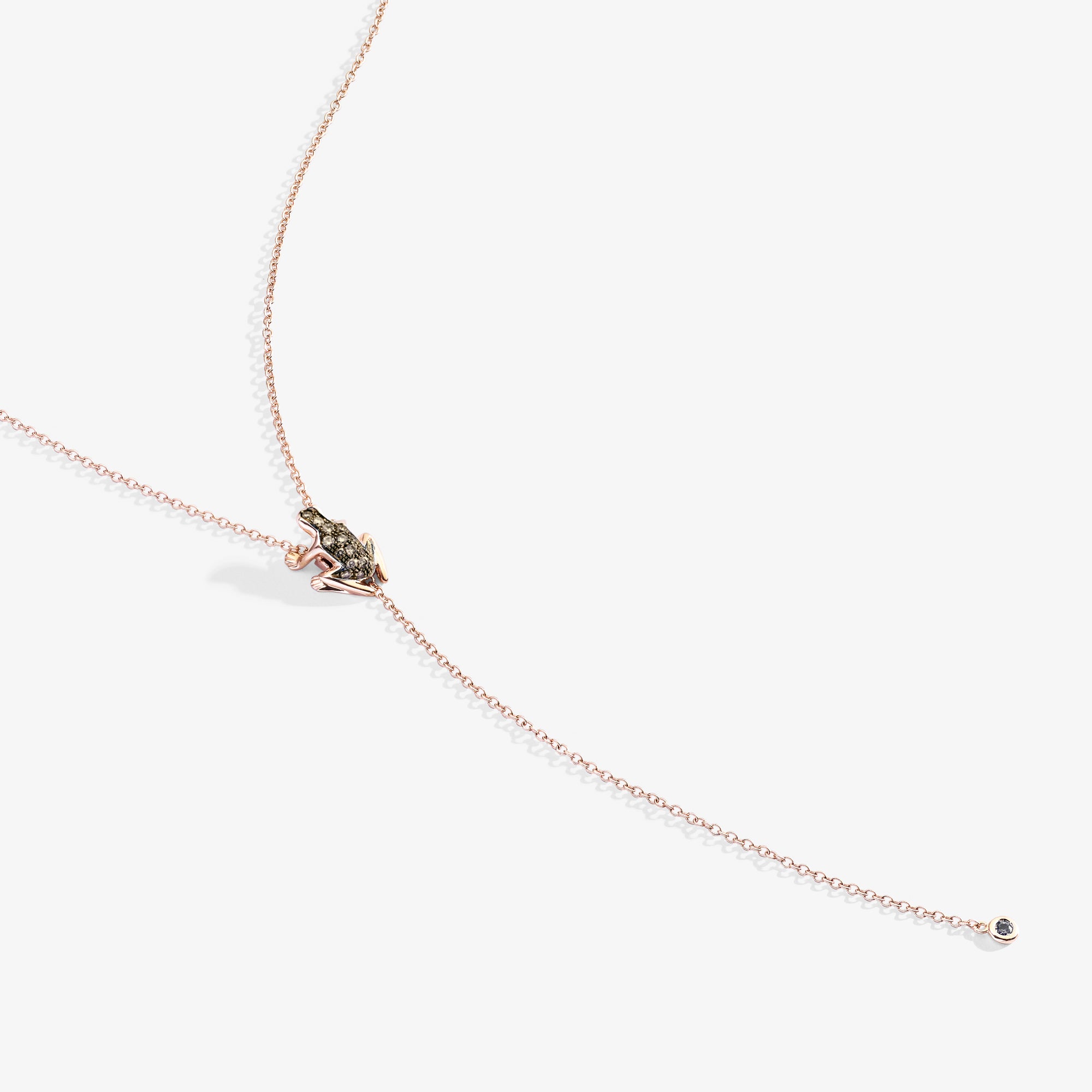 Light and sensual, the Happy Frog Y-Shape necklace is crafted entirely from gold and features a slender line that accentuates the décolleté. At the center, the iconic gold and gemstone frog adds sparkle and character to the design. The lobster clasp can be attached to various jump rings for easy length adjustment.