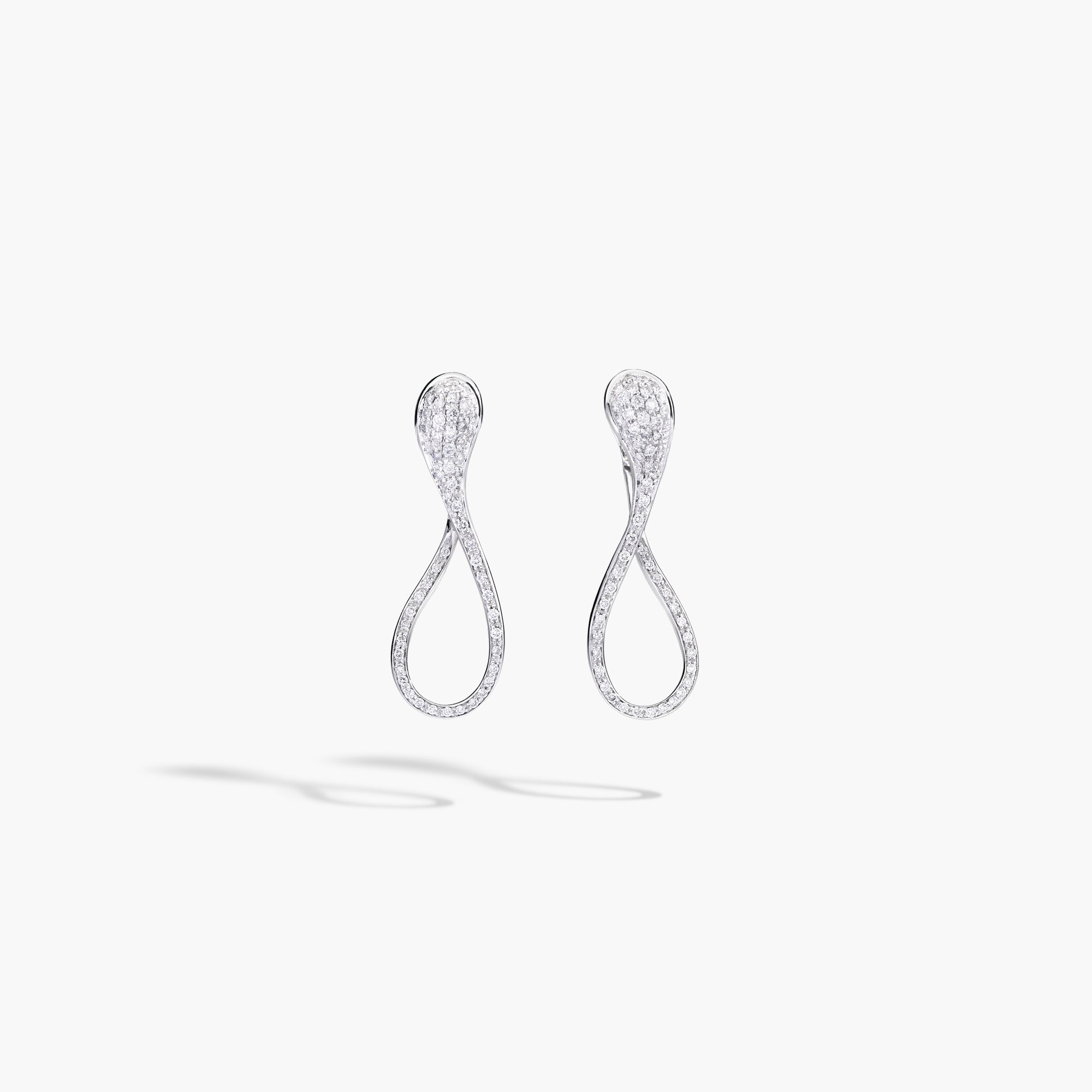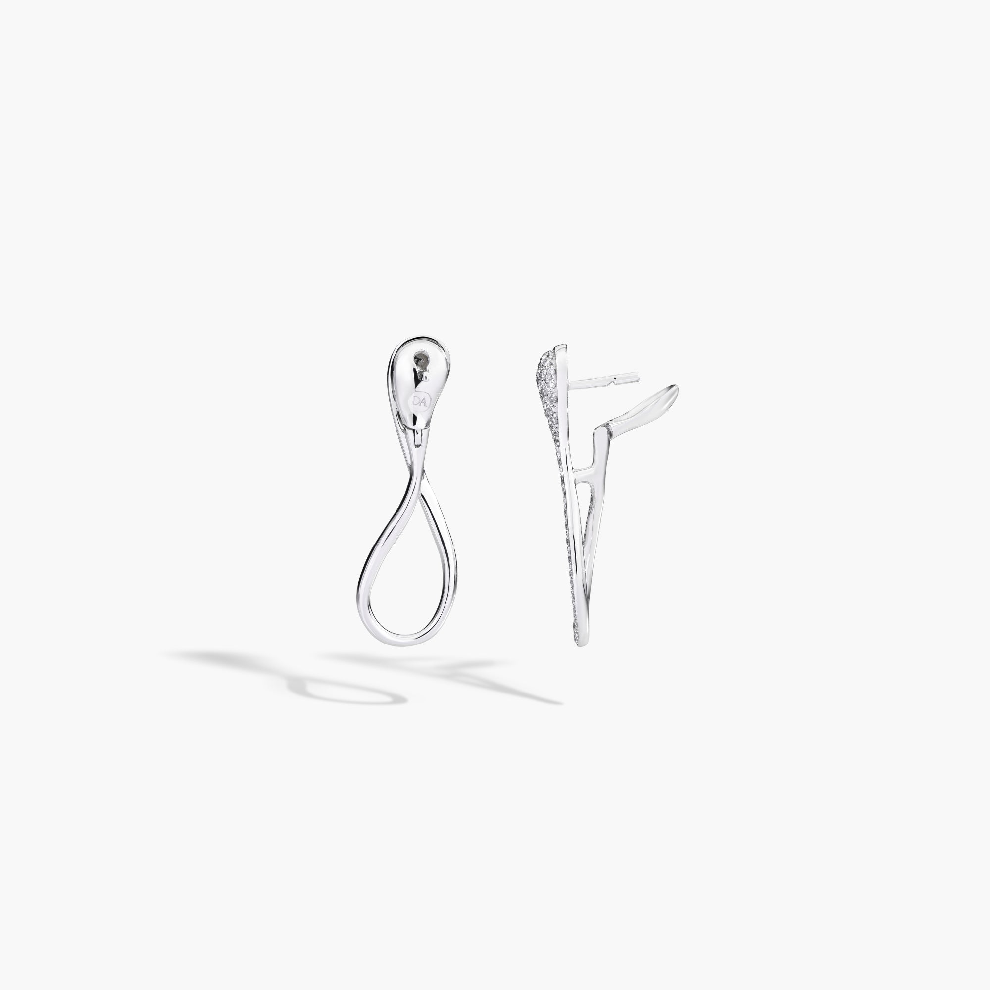 The Elika earrings are inspired by the iconic shape of a maple seed, here entirely covered in pavé diamonds. Designed to effortlessly complement even everyday gestures, they combine preciousness and sophistication. The elongated shape lightly follows the contours of the face, while the integrated, invisible hinged closure makes them easy and flawless to wear.