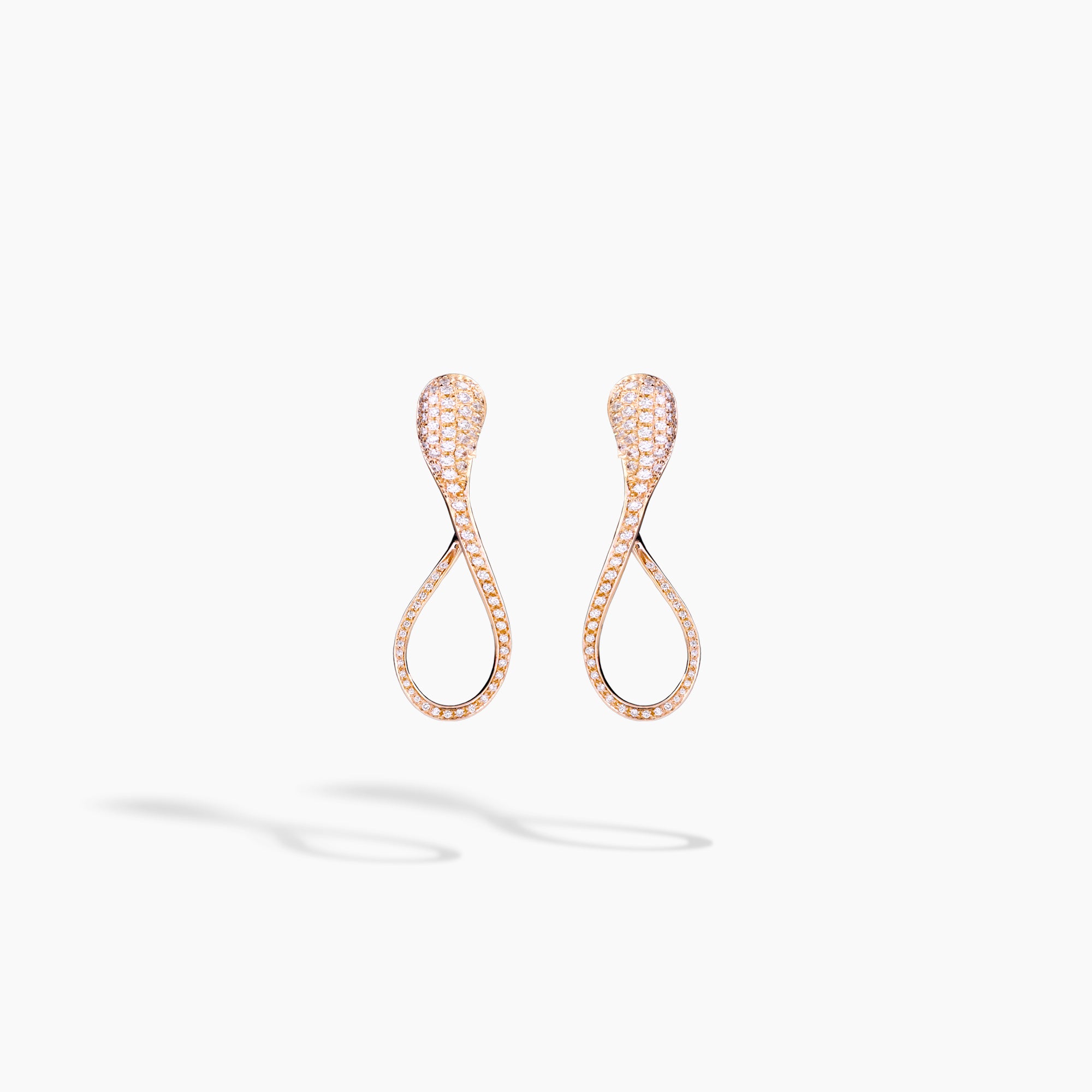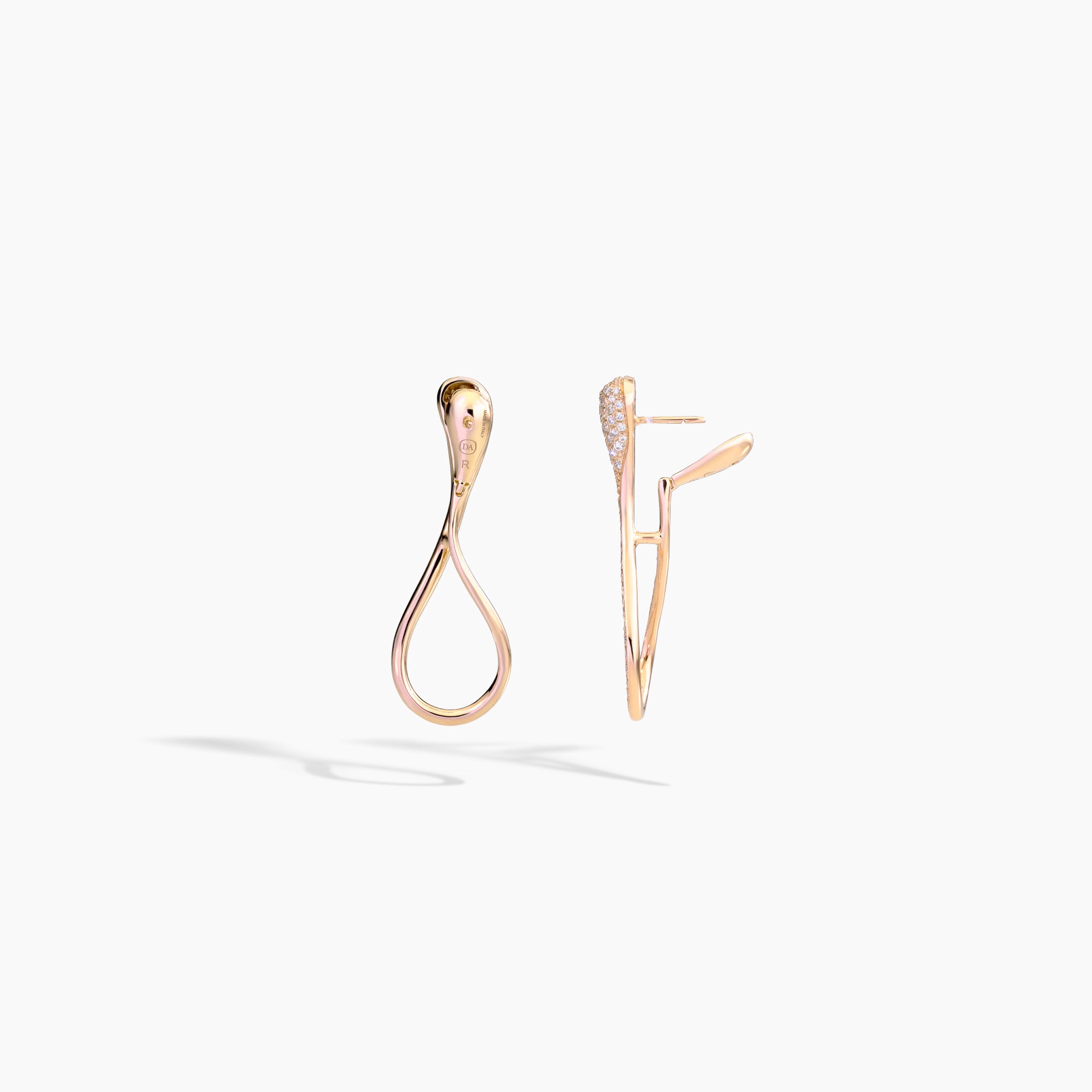 The Elika earrings are inspired by the iconic shape of a maple seed, here entirely covered in pavé diamonds. Designed to effortlessly complement even everyday gestures, they combine preciousness and sophistication. The elongated shape lightly follows the contours of the face, while the integrated, invisible hinged closure makes them easy and flawless to wear.