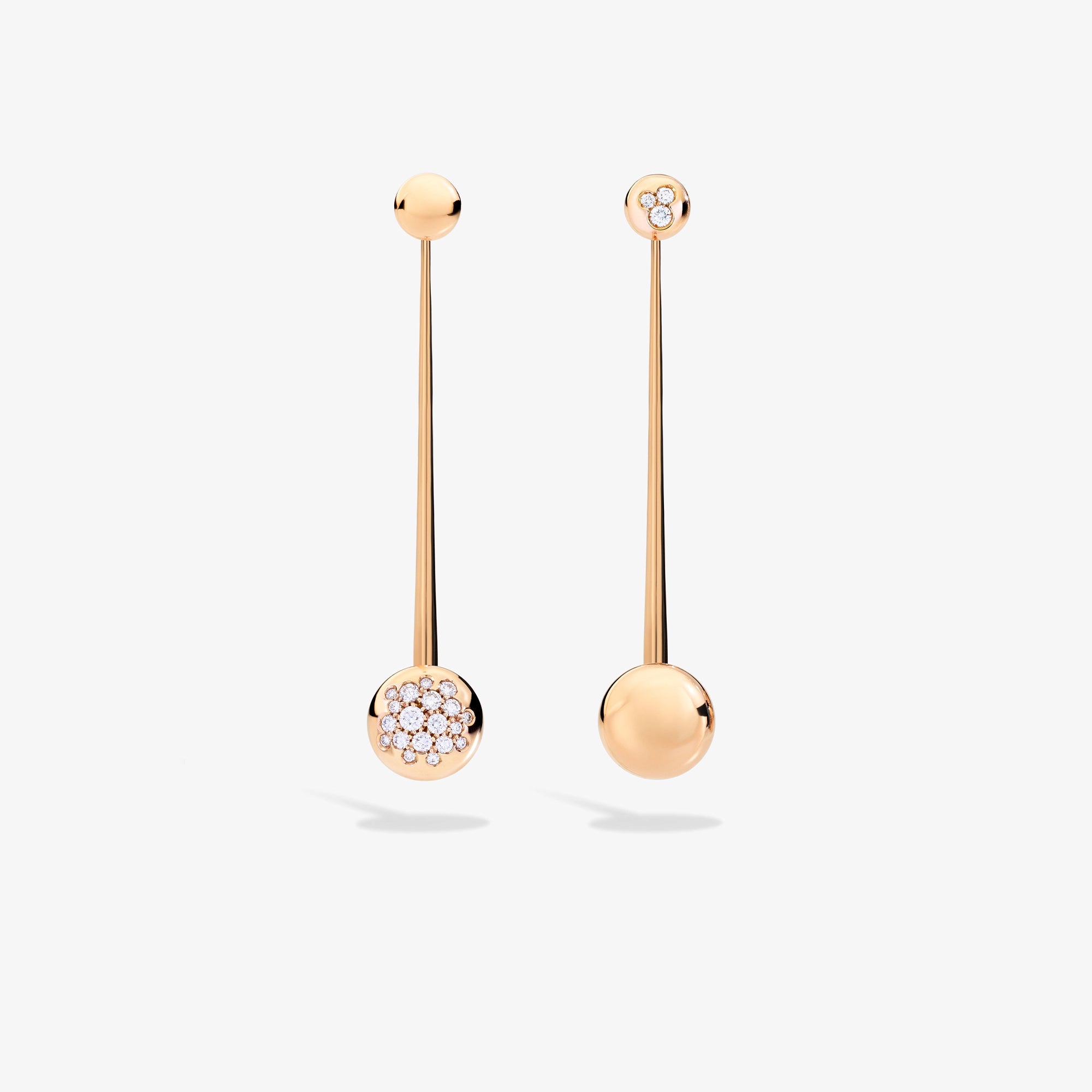The mix & match earrings from the Glamour collection are made of 18k rose gold and diamonds. The total length is 6 cm. The dangling ball measures 1.3 cm and is embellished with diamonds.