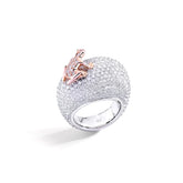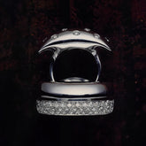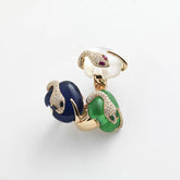 Dall’altro, la forza sorprendente e visionaria di Happy Frog: un anello che rompe le regole, sfida i codici, si fa portavoce di una nuova idea di lusso. Ironico, pop, trasversale. Un oggetto che vive tra arte e design, un’icona nata per chi ama distinguersi con leggerezza e profondità.