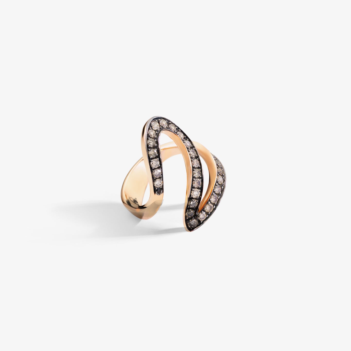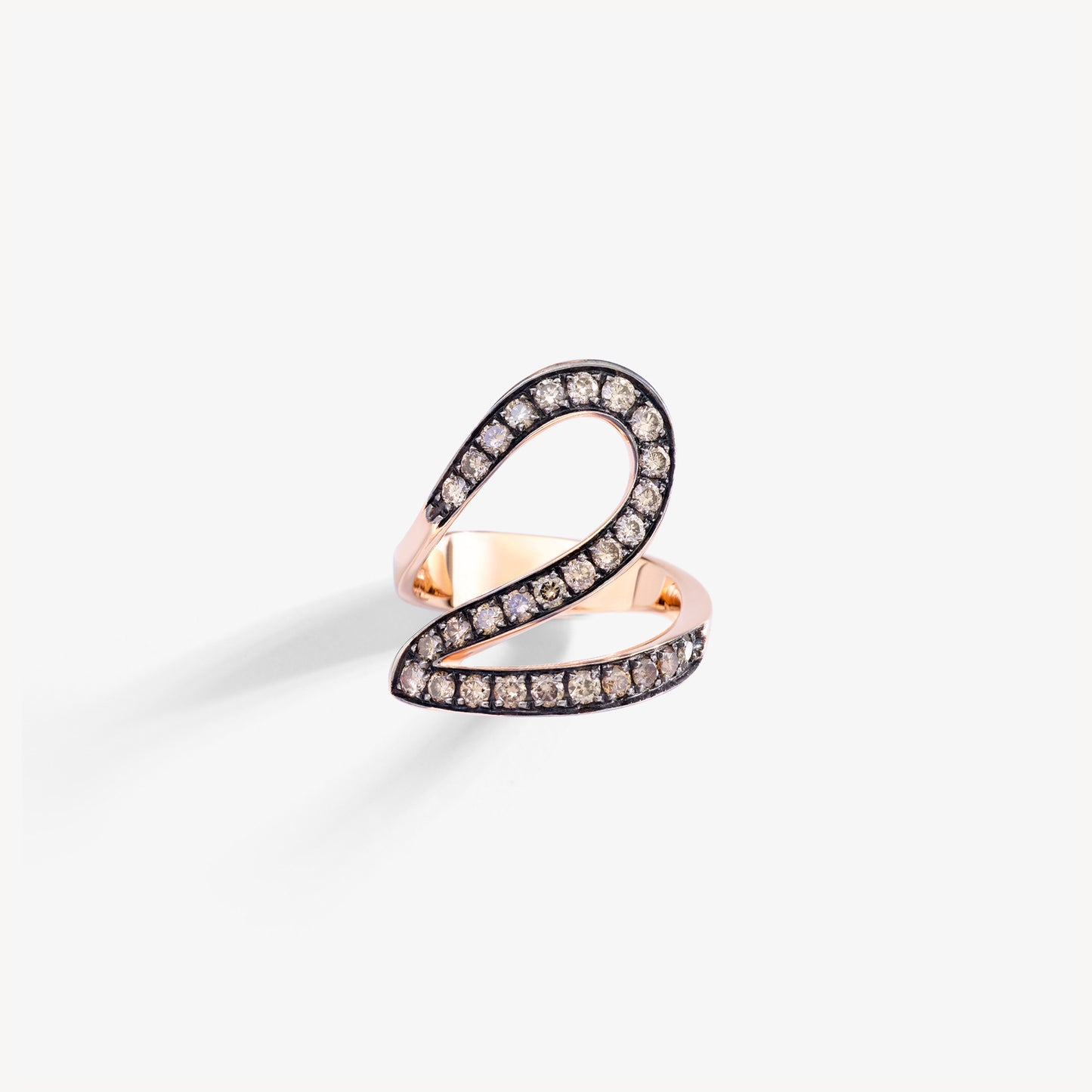 La sinuosità è la parola chiave che caratterizza l'anello Ivy in Diamanti brown montati su oro rosa 18k con rodio nero sulle pietre.