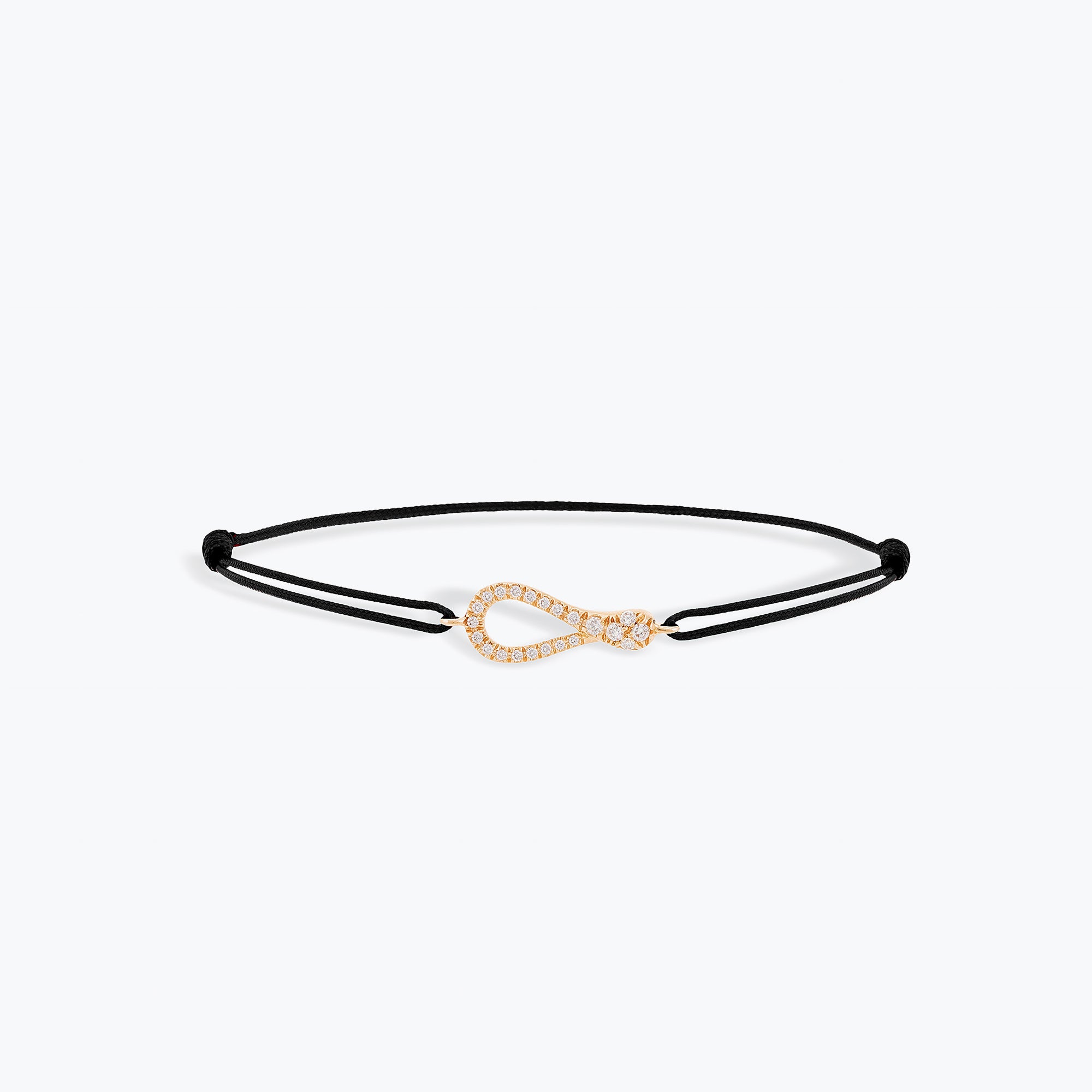 Modulo Elika da 1,5 cm con pavé di diamanti su cordino regolabile in cotone. Un gioiello fresco e quotidiano, ispirato al volo elicoidale del seme d’acero, ideale anche in abbinamento. La misura può essere adattata tramite lo scorrimento dei nodi.